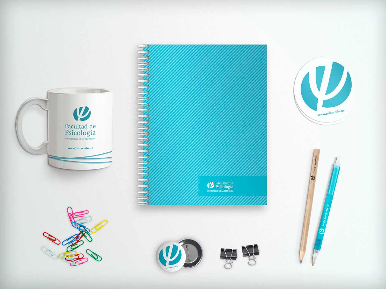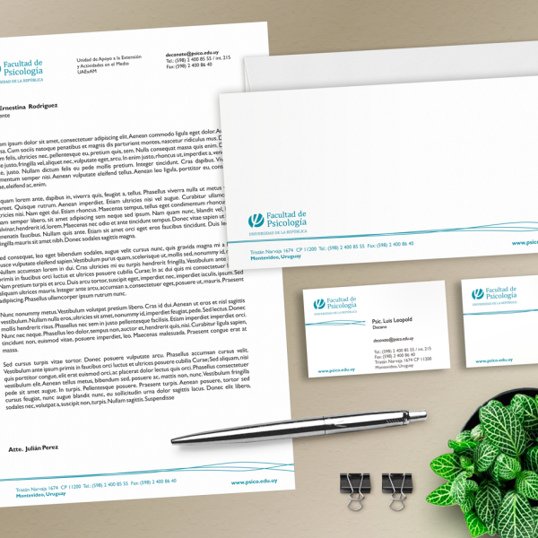 Imagen Institucional Facultad de Psicología Diseñé la imagen institucional de la facultad y aplicaciones diversas como señalética para el edificio y materiales impresos.